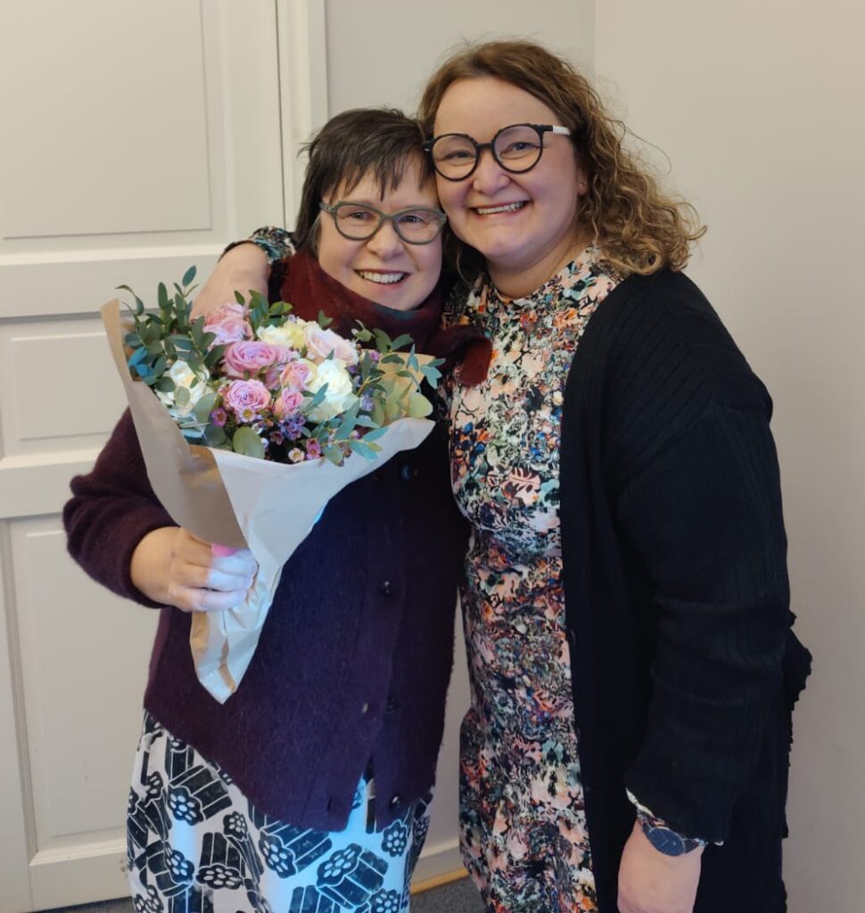 Sirpa Yli-Rekola ja Hanna Piiroinen Pesäpuun kehittämispäivässä tammikuussa 2026 Yli-Rekolan eläkekukituksen jälkeen