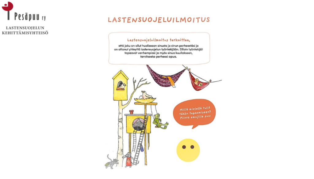 Uusi tehtävämoniste on työstetty Helsingin kaupungin lastensuojelun ja erityisen tuen tarpeen arviointitiimien sosiaalityöntekijöiden kanssa tueksi lapsen tapaamisiin.